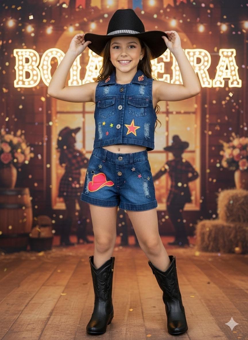 Conjunto Social Miss Cherry Leandro Colete Cinza Claro