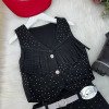 Conjunto Blogueirinha Boiadeira Maraisa Jeans Preto