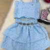 CONJUNTO COMPOSTO POR BLUSINHA, SAIA E CINTO