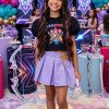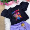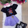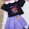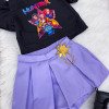 Conjunto Infantil Estiloso – Guerreiras do K – POP Um conjunto cheio de personalidade, perfeito para meninas que gostam de um visual moderno, confortável e cheio de estilo. A combinação de camiseta temática com short saia fashion cria um look descolado que chama atenção em qualquer ocasião. Ideal para passeios, aniversários, sessões de fotos e momentos especiais. Detalhes do Conjunto * Camiseta infantil preta com design moderno e divertido. * Estampa colorida temática musical, trazendo um visual jovem e estiloso * Mangas bufantes, que acrescentam um toque fashion ao look * Tecido confortável, ideal para o dia a dia * Short saia em tom lilás, combinando delicadeza e estilo. * Modelagem short saia, unindo conforto e elegância * Pregas frontais, criando movimento e charme * Cintura com elástico, proporcionando melhor ajuste * Aplicação de estrela dourada com corrente, detalhe moderno que destaca a peça Destaques do Look * Combinação de estilo moderno e delicado * Cores vibrantes e marcantes * Look perfeito para quem gosta de moda infantil cheia de atitude Informações Importantes * Calçados não acompanha o produto * Acessórios das fotos são ilustrativos * As cores podem variar conforme a tela do dispositivo * As medidas podem variar em até 2cm