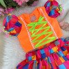 Conjunto Junino Banana Club Luxo Manu Laranja Neon