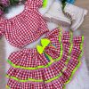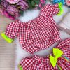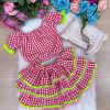 Confeccionado em tecido misto possui forro em poliéster e algodão para não incomodar a criança e proporcionando um caimento incrível e sofisticado, possui gola redonda, comprimento médio, mangas curtas, possui elástico na cintura para melhor ajuste e blusinha com elástico nas costas para ajustar a parte posterior do conjunto completando o look dos sonhos!