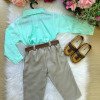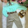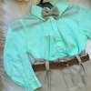 Conjunto composto por: Camisa social Manga Longa linho na cor Verde,cinto na cor Marrom, calça na cor Bege e Gravata borboleta bege. * Calçados vendido separadamente, disponível em nosso site na categoria calçados. * LEMBRANDO QUE PODERA HAVER VARIAÇÃO DE TONALIDADE DO PRODUTO DEPENDENDO DA TELA DO SEU DISPOSITIVO.