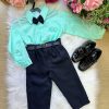 Conjunto composto por: Camisa social Manga Longa linho na cor Verde claro, cinto na cor Preto, calça na cor preta e Gravata borboleta preta.