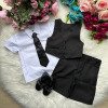 Conjunto composto por camisa social branca, shorts preto, colete preto e gravata preta*Calçados e acessorios não inclusos Calçados Vendindos Separadamente * LEMBRANDO QUE PODERA HAVER VARIAÇÃO DE TONALIDADE DO PRODUTO DEPENDENDO DA TELA DO SEU DISPOSITIVO40% poliester60% algodão