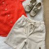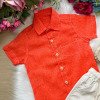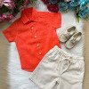 Esse conjunto é a escolha perfeita para os meninos que amam se vestir com estilo e conforto, ideal para aniversários, passeios, eventos e momentos especiais ao ar livre. Camisa:Confeccionada em tecido tipo linho 85% viscose e 15% linho, na cor laranja, possui modelagem moderna com mangas curtas, gola clássica, bolsinho frontal e botões em tom amadeirado, que trazem um toque artesanal e sofisticado. Bermuda:Acompanha bermuda bege de linho com cós elástico e cordão de ajuste 70% poliester, 16% viscose, 11% linho, 3% algodão, garantindo conforto e praticidade. O tecido leve e de toque suave proporciona liberdade de movimento, ideal para dias mais quentes. Destaques: Tecido leve e confortável tipo linho Modelagem moderna e elegante Cós com elástico e cordão regulável Ideal para eventos casuais ou festas ao ar livre Cores neutras e combináveis com diferentes calçados Sugestão de uso: Combine com mocassim ou sandálias infantis para um look completo e encantador! Perfeito para:Batizados, casamentos diurnos, ensaios fotográficos, festas de aniversário e momentos em família.