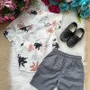 TECIDO DA CAMISA: 100% ALGODÃOTECIDO DO SHORT: 50% POLIESTER, 30% VISCOSE, 20%LINHO Conjunto composto por: Camisa Social Manga Curta off florida e Shorts na cor cinza OBS: Calçados e acessórios Vendidos Separadamente. * LEMBRANDO QUE PODERA HAVER VARIAÇÃO DE TONALIDADE DO PRODUTO DEPENDENDO DA TELA DO SEU DISPOSITIVO