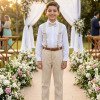 Conjunto Social Infantil Leo Bege com Suspensório Um conjunto elegante e atemporal, perfeito para ocasiões especiais como casamentos, batizados, aniversários e eventos formais. Tecidos Camisa: Microfibra 100% poliéster – leve, confortável e com ótimo caimento. Calça: Sarja 100% poliéster – estruturada, resistente e sofisticada. O conjunto é composto por: Camisa social branca de manga longa Gravata borboleta bege Calça bege Suspensório bege Cinto marrom A combinação de tons neutros traz elegância e versatilidade, permitindo composições clássicas e modernas. Informações Importantes Demais peças e acessórios da foto não estão inclusos. Calçados vendidos separadamente. Pode haver pequena variação de tonalidade do produto de acordo com a configuração da tela do seu dispositivo.