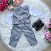 Conjunto composto por: Camisa social na cor Branca manga longa, gravata borboleta cinza, calça na cor cinza, colete de alfaiataria cinza e cinto. Demais peças ou acessórios, não inclusos. Calçados Vendindos Separadamente NOIVINHOPAGEMBATIZADO * LEMBRANDO QUE PODERA HAVER VARIAÇÃO DE TONALIDADE DO PRODUTO DEPENDENDO DA TELA DO SEU DISPOSITIVO