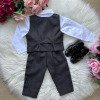 Conjunto composto por: Camisa social na cor Branca manga longa, gravata borboleta preta, calça na cor preta , colete de alfaiataria preto e cinto. Demais peças ou acessórios, não inclusos. Calçados Vendindos SeparadamenteNOIVINHOPAGEMBATIZADO    * LEMBRANDO QUE PODERA HAVER VARIAÇÃO DE TONALIDADE DO PRODUTO DEPENDENDO DA TELA DO SEU DISPOSITIVO
