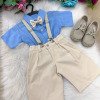 Conjunto Infantil Social Henry – Miss Cherry Deixe o pequeno cheio de charme e elegância com este conjunto infantil perfeito para ocasiões especiais! Composição do look: Camisa vermelha de manga curta com botões frontais; Shorts bege social; Suspensório bege ajustável; Gravata borboleta bege, dando o toque clássico ao visual. Tecido Camisa Linho 100% Algodão Tecido Shorts Twill Colorido 100% PoliesterDestaques do produto: Conjunto fresquinho e confortável, ideal para festas, aniversários, casamentos e batizados; Combinação moderna e delicada, que valoriza o estilo infantil sem abrir mão da sofisticação; Produzido em tecido leve e macio, pensado para o bem-estar da criança. Perfeito para registrar momentos únicos com muito estilo e elegância! Informações Importantes As medidas podem variar em até 2cm. Recomendamos sempre consultar a tabela de medidas antes da compra para evitar erros. Calçado vendido separadamente, disponível na categoria Calçados As cores do produto podem sofrer variações de tonalidade conforme a configuração da tela do seu dispositivo.