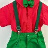 Conjunto Miss Cherry Henry Camisa Vermelha Suspensorio Verde