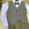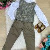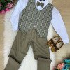 TECIDO CAMISA SOCIAL MANGA LONGA : MICROFIBRA 100% POLIESTERTECIDO DA CALÇA: TWILL 100% POLIESTER TECIDO COLETE: 96% POLIESTER/ 4% ELASTANO Conjunto composto por: Camisa Social na cor Branca, Gravata Borboleta na verde, Cinto na Cor marrom, Calça verde e colete xadrez Demais peças ou acessórios, não inclusos. BATIZADO,PAGEM,NOIVINHO