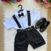 Conjunto composto por: Camisa social na cor Branca manga curta, gravata preta, short na cor preta, suspensorio preta e cinto.