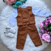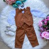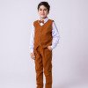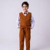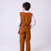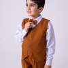 Conjunto composto por: Camisa social na cor branca manga Longa, gravata borboleta Caramelo, cinto, Calça na cor caramelo e colete na cor caramelo.