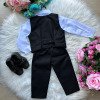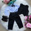 Conjunto composto por: Camisa social na cor branca manga Longa, gravata borboleta preta, cinto, Calça na cor preta e colete na cor preta