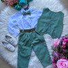 Conjunto composto por: Camisa social na cor branca manga Longa, gravata borboleta Verde, cinto, Calça na cor verde e colete na cor verde