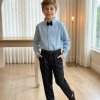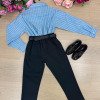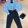 Conjunto Social Henrique – Elegância Clássica Um conjunto sofisticado e moderno, perfeito para ocasiões especiais. A combinação da camisa com a calça social cria um visual elegante, ideal para deixar os pequenos ainda mais estilosos em eventos importantes. Perfeito para casamentos, aniversários, batizados, formaturas e ensaios fotográficos. Detalhes do Conjunto • Camisa social azul de manga longa • Estampa listrada delicada, trazendo um visual clássico e sofisticado • Gola social estruturada • Fechamento frontal por botões • Punhos com botões, permitindo melhor ajuste nas mangas • Tecido leve e confortável • Calça social preta • Modelagem elegante com pregas frontais • Corte moderno que garante bom caimento • Cintura com passantes para uso de cinto • Cinto preto • Acessório clássico que complementa o visual • Gravata borboleta preta •Detalhe sofisticado que completa o look social Destaques do Look • Visual clássico e elegante • Combinação de cores sofisticadas e versáteis • Ideal para eventos especiais e fotos marcantes Informações Importantes • Calçados não acompanha o produto • Tecido camisa 100% algodão/ calça oxford 100% poliester • Acessórios das fotos são ilustrativos • As cores podem variar conforme a tela do dispositivo • As medidas podem variar em até 2cm