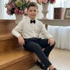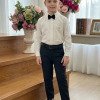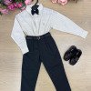Conjunto Social Henrique – Elegância Clássica Um conjunto sofisticado e moderno, perfeito para ocasiões especiais. A combinação da camisa com a calça social cria um visual elegante, ideal para deixar os pequenos ainda mais estilosos em eventos importantes. Perfeito para casamentos, aniversários, batizados, formaturas e ensaios fotográficos. Detalhes do Conjunto • Camisa social bege de manga longa • Estampa listrada delicada, trazendo um visual clássico e sofisticado • Gola social estruturada • Fechamento frontal por botões • Punhos com botões, permitindo melhor ajuste nas mangas • Tecido leve e confortável • Calça social preta • Modelagem elegante com pregas frontais • Corte moderno que garante bom caimento • Cintura com passantes para uso de cinto • Cinto preto • Acessório clássico que complementa o visual • Gravata borboleta preta •Detalhe sofisticado que completa o look social Destaques do Look • Visual clássico e elegante • Combinação de cores sofisticadas e versáteis • Ideal para eventos especiais e fotos marcantes Informações Importantes • Calçados não acompanha o produto • Tecido camisa 100% algodão/ calça oxford 100% poliester • Acessórios das fotos são ilustrativos • As cores podem variar conforme a tela do dispositivo • As medidas podem variar em até 2cm