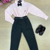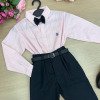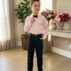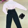 Conjunto Social Henrique – Elegância Clássica Um conjunto sofisticado e moderno, perfeito para ocasiões especiais. A combinação da camisa com a calça social cria um visual elegante, ideal para deixar os pequenos ainda mais estilosos em eventos importantes. Perfeito para casamentos, aniversários, batizados, formaturas e ensaios fotográficos. Detalhes do Conjunto • Camisa social rosa de manga longa • Estampa listrada delicada, trazendo um visual clássico e sofisticado • Gola social estruturada • Fechamento frontal por botões • Punhos com botões, permitindo melhor ajuste nas mangas • Tecido leve e confortável • Calça social preta • Modelagem elegante com pregas frontais • Corte moderno que garante bom caimento • Cintura com passantes para uso de cinto • Cinto preto • Acessório clássico que complementa o visual • Gravata borboleta preta •Detalhe sofisticado que completa o look social Destaques do Look • Visual clássico e elegante • Combinação de cores sofisticadas e versáteis • Ideal para eventos especiais e fotos marcantes Informações Importantes • Calçados não acompanha o produto • Tecido camisa 100% algodão/ calça oxford 100% poliester • Acessórios das fotos são ilustrativos • As cores podem variar conforme a tela do dispositivo • As medidas podem variar em até 2cm