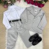 Coleção Terno Jorge Infantil A Coleção Terno Jorge foi criada para pequenos que já nascem com presença. Um conjunto elegante, moderno e impecável, ideal para ocasiões que pedem sofisticação sem abrir mão do conforto. Com modelagem estruturada e acabamento refinado, é a escolha perfeita para transformar qualquer evento em momento memorável. O Conjunto Inclui Blazer/Terno social com botões frontais Calça social com ótimo caimento Camisa social interna Gravata borboleta combinando Detalhes do Terno Blazer com bolsos frontais aplicados Botões decorativos nas mangas Corte moderno com modelagem alinhada Calça confortável com excelente ajuste Camisa em tom claro para contraste elegante Gravata borboleta no mesmo tom do terno Tecido: Camisa microfibra 100% Poliester/ Conjunto Twill 100% Poliester Indicado Para: Casamentos, Batizados, Aniversários, Formaturas e Eventos especiais Informações Importantes As medidas podem variar em até 2cm Pode haver alteração de cor de acordo com o lote Consulte a tabela de medidas antes da compra As cores podem sofrer leve variação conforme a tela do dispositivo Calçados não incluso.
