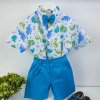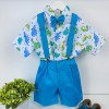 Conjunto composto por: Camisa Personagem, Shorts com suspensorio e gravata borboleta na cor Azul Tiffany. Demais peças ou acessórios, não inclusos.