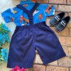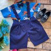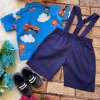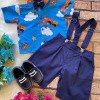 Conjunto composto por: Camisa Personagem, Shorts com suspensorio e gravata borboleta na cor Azul Royal.