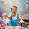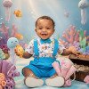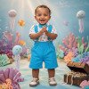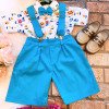 Conjunto composto por: Camisa Personagem, Shorts com suspensorio e gravata borboleta na cor Azul Tiffany. Demais peças ou acessórios, não inclusos.