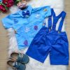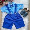 Deixe seu pequeno brilhar com o conjunto temático dos Bolofofos! Composto por camiseta e bermuda estampadas em azul royal, esse look é perfeito para momentos especiais e cheio de estilo.