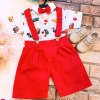 Conjunto composto por: Camisa Personagem, Shorts com suspensorio e gravata borboleta na cor.