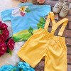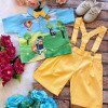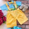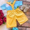 Conjunto composto por: Camisa Personagem, Shorts com suspensorio e gravata borboleta na cor Amarela.
