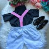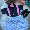 Conjunto composto por: Camisa Preta, Shorts com suspensorio e gravata borboleta.