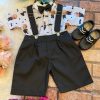 Conjunto composto por: Camisa Personagem, Shorts com suspensorio e gravata borboleta na cor Preta.