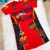 Cor predominante vermelha, com estampas vibrantes inspiradas no carro mais querido das telonas.
