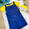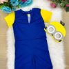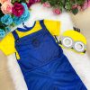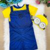 Estampa que imita o clássico macacão jeans azul dos Minions, com camiseta amarela integrada.