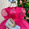 Confeccionado em tecido misto possui forro em poliéster e algodão para não incomodar a criança e proporcionando um caimento incrível e sofisticado, possui gola redonda, comprimento médio, mangas curtas e saia com glitter, possui elástico nas costas para melhor ajuste, acabamento com lindo laço na parte posterior do vestido completa o look dos sonhos!Cuidado Produto Delicado. Exige cuidado tanto no uso como na lavagem que deve ser feita a mão jamais lavagem a máquinaCuidado ao Vestir a criança se Forçar para entrar ou Puxar com força o tecido pode esgarçar a costura sendo assim NÃO REALIZAREMOS TROCA. * Medidas podem variar em até 4cm * Caso queira o vestido mais armado, recomendamos o uso do saiote ou anágua de armação, disponível no nosso site na categoria acessórios. * Tiara vendida separadamente, disponível em nosso site na categoria acessórios. * Calçados vendido separadamente, disponível em nosso site na categoria calçados. * LEMBRANDO QUE PODERA HAVER VARIAÇÃO DE TONALIDADE DO PRODUTO DEPENDENDO DA TELA DO SEU DISPOSITIVO