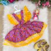 Confeccionado em tecido misto possui forro em poliéster e algodão para não incomodar a criança e proporcionando um caimento incrível e sofisticado, possui gola redonda, comprimento médio, mangas curtas, possui elástico nas costas para melhor ajuste, acabamento com lindo laço na parte posterior do vestido completa o look dos sonhos!