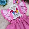 Confeccionado em tecido misto possui forro em poliéster e algodão para não incomodar a criança e proporcionando um caimento incrível e sofisticado, possui gola redonda, comprimento médio, mangas curtas, possui elástico nas costas para melhor ajuste, acabamento com lindo laço na parte posterior do vestido completa o look dos sonhos!