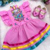 TECIDO 100%POLIESTERTAMANHO UNICOVESTE DE 03 MESES A 2 ANOS APROXIMADAMENTE *ESTE MODELO ACOMPANHA LAÇO DE CABELO Confeccionado em tecido misto possui forro em poliéster e algodão para não incomodar a criança e proporcionando um caimento incrível e sofisticado, possui gola redonda, comprimento médio, mangas curtas, possui elástico nas costas para melhor ajuste, acabamento com lindo laço na parte posterior do vestido completa o look dos sonhos! * Medidas podem variar em até 2cm * Caso queira o vestido mais armado, recomendamos o uso do saiote ou anágua de armação, disponível no nosso site na categoria acessórios. * Tiara vendida separadamente, disponível em nosso site na categoria acessórios. * Calçados vendido separadamente, disponível em nosso site na categoria calçados. * LEMBRANDO QUE PODERA HAVER VARIAÇÃO DE TONALIDADE DO PRODUTO DEPENDENDO DA TELA DO SEU DISPOSITIVO.
