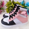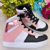 TENIS BOTA BRANCO com Detalhes na Cor Preta e Rosa Espelhado