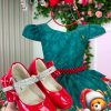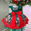 Laço vermelho volumoso na parte de trás, que garante um acabamento delicado e elegante.