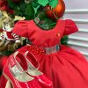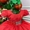 Confeccionado em tecido misto possui forro em poliéster e algodão para não incomodar a criança e proporcionando um caimento incrível e sofisticado, possui gola redonda,renda de flores e apliques de strass no peito, comprimento médio, mangas curtas, possui elástico nas costas para melhor ajuste, acabamento com lindo laço na parte posterior do vestido completa o look dos sonhos!