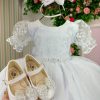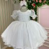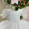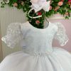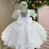 Confeccionado em tecido misto possui forro em poliéster e algodão para não incomodar a criança e proporcionando um caimento incrível e sofisticado, possui gola redonda, comprimento médio, mangas curtas, possui elástico nas costas para melhor ajuste, acabamento com lindo laço na parte posterior do vestido completa o look dos sonhos!