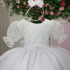 TECIDO TECNO SPORTINGTECIDO TULETECIDO RENDAS    Confeccionado em tecido misto possui forro em poliéster e algodão para não incomodar a criança e proporcionando um caimento incrível e sofisticado, possui gola redonda, comprimento médio, mangas curtas, possui elástico nas costas para melhor ajuste, acabamento com lindo laço na parte posterior do vestido completa o look dos sonhos! * Medidas podem variar em até 4cm * Caso queira o vestido mais armado, recomendamos o uso do saiote ou anágua de armação, disponível no nosso site na categoria acessórios. * Tiara vendida separadamente, disponível em nosso site na categoria acessórios. * Calçados vendido separadamente, disponível em nosso site na categoria calçados. * LEMBRANDO QUE PODERA HAVER VARIAÇÃO DE TONALIDADE DO PRODUTO DEPENDENDO DA TELA DO SEU DISPOSITIVO