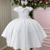 Um verdadeiro encanto! Este vestido Ravena é a escolha perfeita para deixar as pequenas elegantes e radiantes em ocasiões especiais como casamentos, aniversários, formaturas e eventos festivos. Confeccionado em tecido de alfaiataria 100% poliéster, o modelo oferece toque macio, caimento estruturado e aparência sofisticada, mantendo o conforto que as crianças precisam. O busto apresenta um trabalho trançado impecável, que traz textura e requinte à peça. A gola dobrada se une a um laço com detalhe em strass dourado, adicionando um toque delicado e glamouroso. As mangas completam o visual com charme e romantismo. Na parte de trás, o vestido possui abertura em formato arredondado, lastex central para melhor ajuste e um laço grande e estruturado na cintura, tornando o look ainda mais gracioso. A saia é ampla e rodada, com movimento leve e elegante. Detalhes do Produto: Busto trançado com gola e laço decorado com strass Manga curta Abertura nas costas com lastex e laço grande Saia rodada com caimento perfeito Acabamento de alta qualidade Tecido: Alfaiataria 100% poliéster Ideal para:casamentos, daminhas, festas de aniversário, ensaios fotográficos e eventos especiais. Dica: Combine com sapatilhas douradas, pratas ou brancas para um visual completo e encantador. Informações Importantes As medidas podem variar em até 2cm. Recomendamos sempre consultar a tabela de medidas antes da compra para evitar erros. Tecido 100% poliester Para um volume extra, indicamos o uso de saiote de armação, vendido separadamente na categoria Acessórios. Tiara e outros acessórios não acompanham o produto, mas estão disponíveis em nosso site. Calçado vendido separadamente, disponível na categoria Calçados As cores do produto podem sofrer variações de tonalidade conforme a configuração da tela do seu dispositivo.