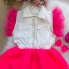 Confeccionado em tecido misto SARJA proporcionando um caimento incrível e sofisticado, possui gola redonda, comprimento médio, mangas curtas,completa o look dos sonhos! ROSA NEON, BABADO, BABADINHOS, BLOGUEIRINHA. ACOMPANHA LAÇO DE CABELO. * Medidas podem variar em até 4cm * Caso queira o vestido mais armado, recomendamos o uso do saiote ou anágua de armação, disponível no nosso site na categoria acessórios. * Tiara vendida separadamente, disponível em nosso site na categoria acessórios. * Calçados vendido separadamente, disponível em nosso site na categoria calçados. * LEMBRANDO QUE PODERA HAVER VARIAÇÃO DE TONALIDADE DO PRODUTO DEPENDENDO DA TELA DO SEU DISPOSITIVO