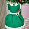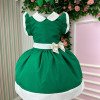 Confeccionado em tecido misto possui forro em poliéster e algodão para não incomodar a criança e proporcionando um caimento incrível e sofisticado, possui gola redonda, comprimento médio, mangas curtas, possui elástico nas costas para melhor ajuste, acabamento com lindo laço na parte posterior do vestido completa o look dos sonhos!