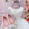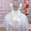 Confeccionado em tecido misto possui forro em poliéster e algodão para não incomodar a criança e proporcionando um caimento incrível e sofisticado, possui gola redonda, comprimento médio, mangas curtas, possui elástico nas costas para melhor ajuste, e acabamento com lindo laço na parte posterior do vestido completa o look dos sonhos!