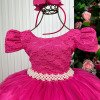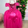Confeccionado em tecido misto possui forro em poliéster e algodão para não incomodar a criança e proporcionando um caimento incrível e sofisticado, possui gola redonda, comprimento médio, mangas curtas, contém, também, elástico nas costas para melhor ajuste, acabamento com lindo laço na parte posterior do vestido completa o look dos sonhos!
