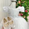 Confeccionado em tecido misto possui forro em poliéster e algodão para não incomodar a criança e proporcionando um caimento incrível e sofisticado, possui gola redonda, comprimento médio, mangas curtas, contém, também, elástico nas costas para melhor ajuste, acabamento com lindo laço na parte posterior do vestido completa o look dos sonhos!